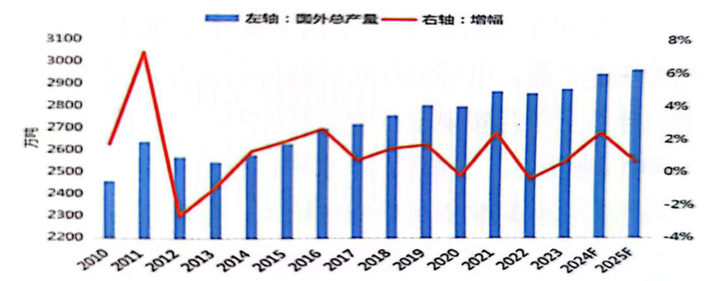 2-2 2010-2025F國外電解鋁產(chǎn)量