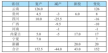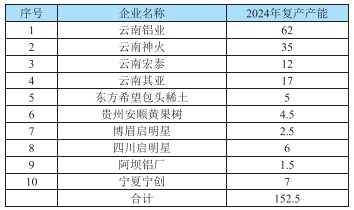 2-2 2024年中國電解鋁復(fù)產(chǎn)產(chǎn)能變動情況(萬噸/)